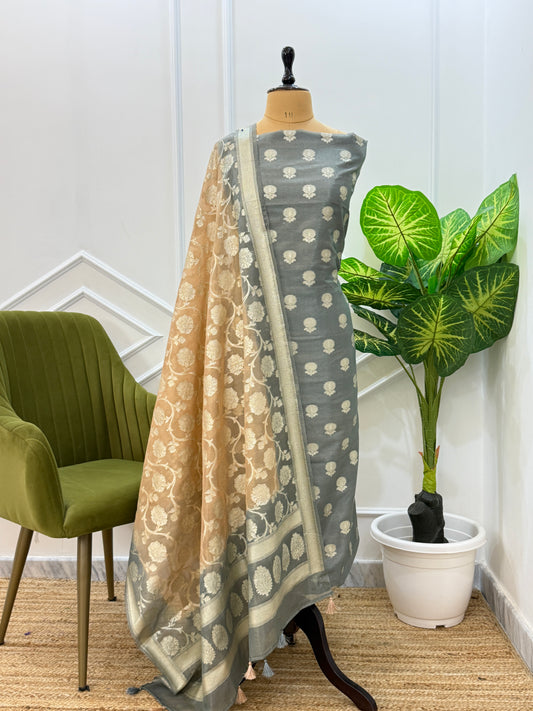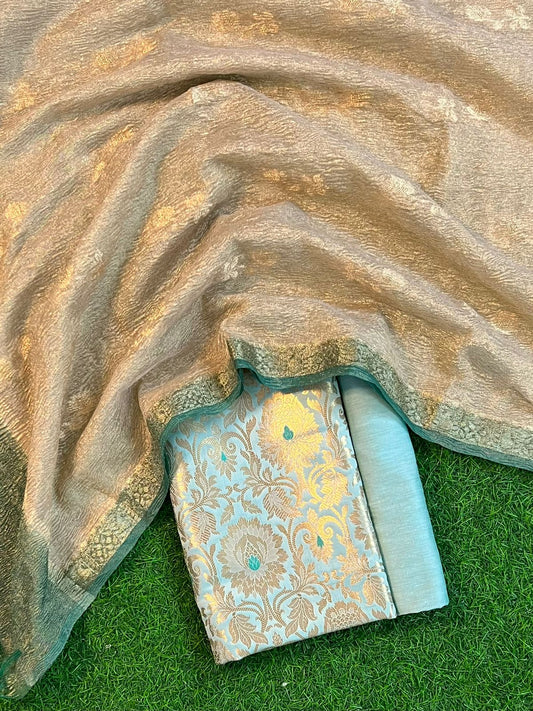 Premium banarasi 3 piece zari tissue kota suit