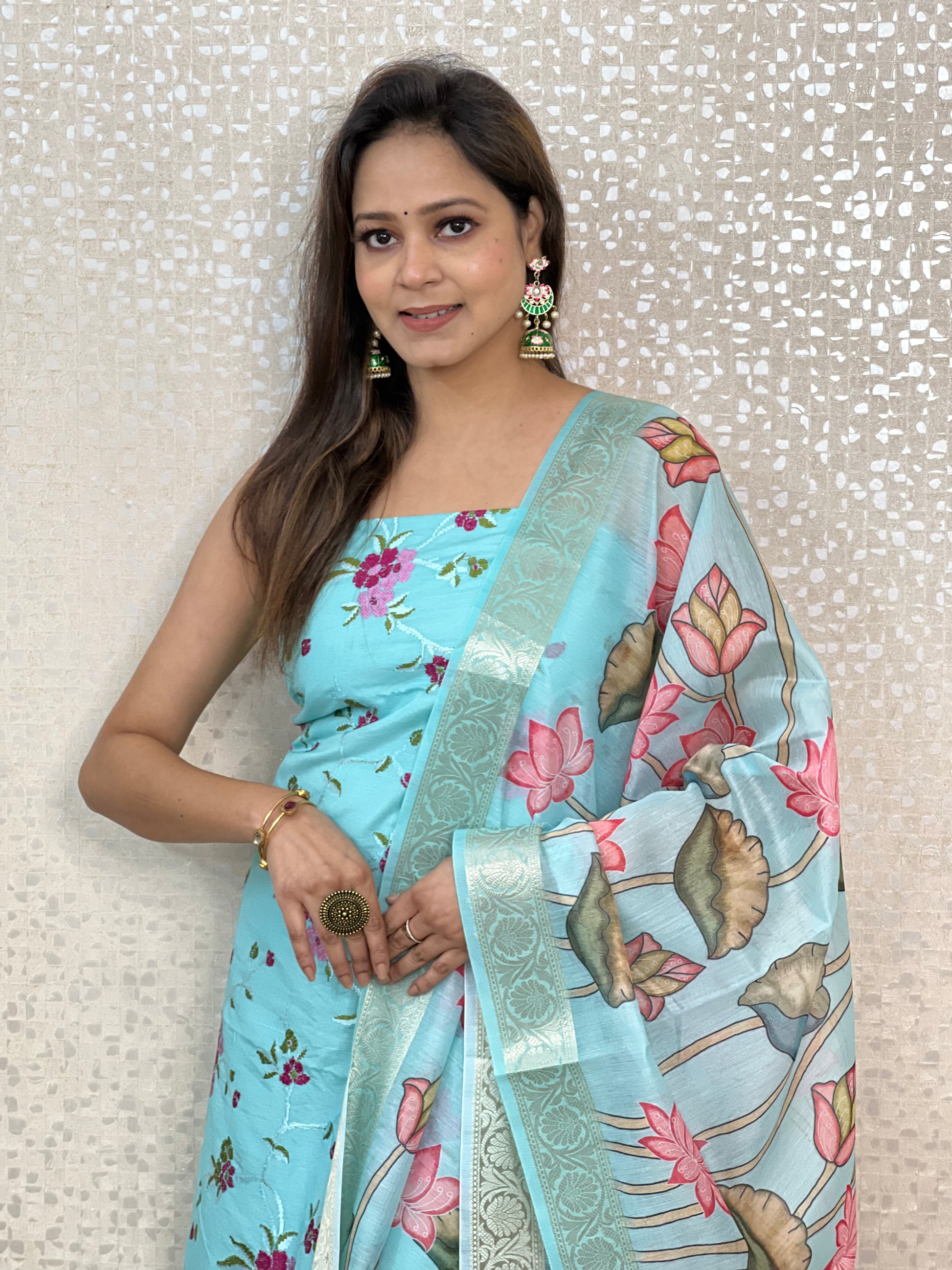 👗EXCLUSIVE BANARASI CHANDERI DIGITAL PRINT EMBROIDERY SUIT COLLECTION 🌹