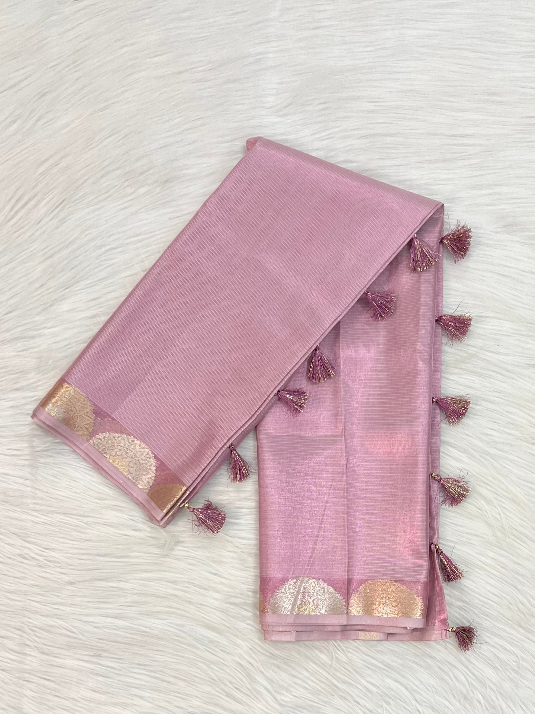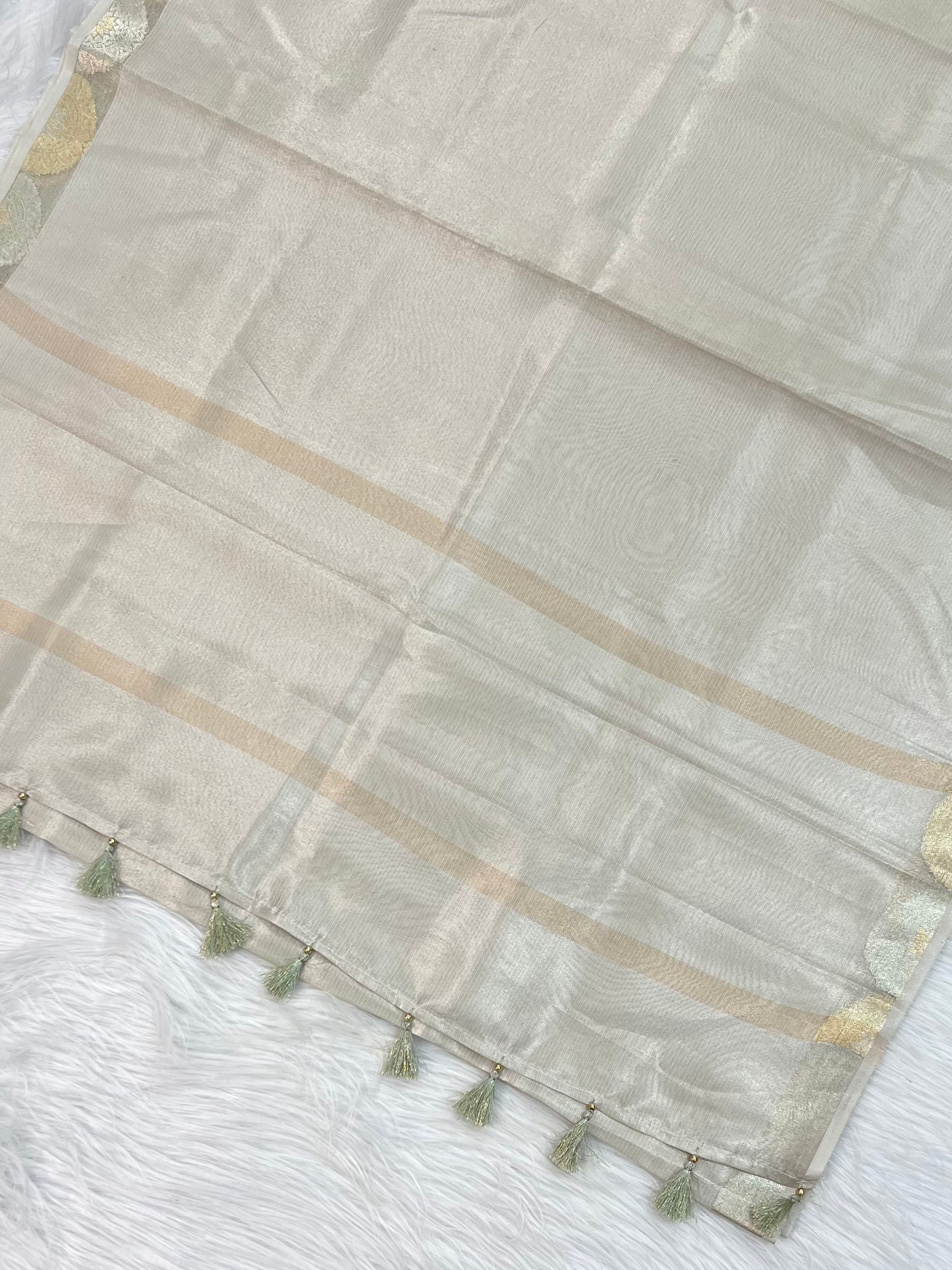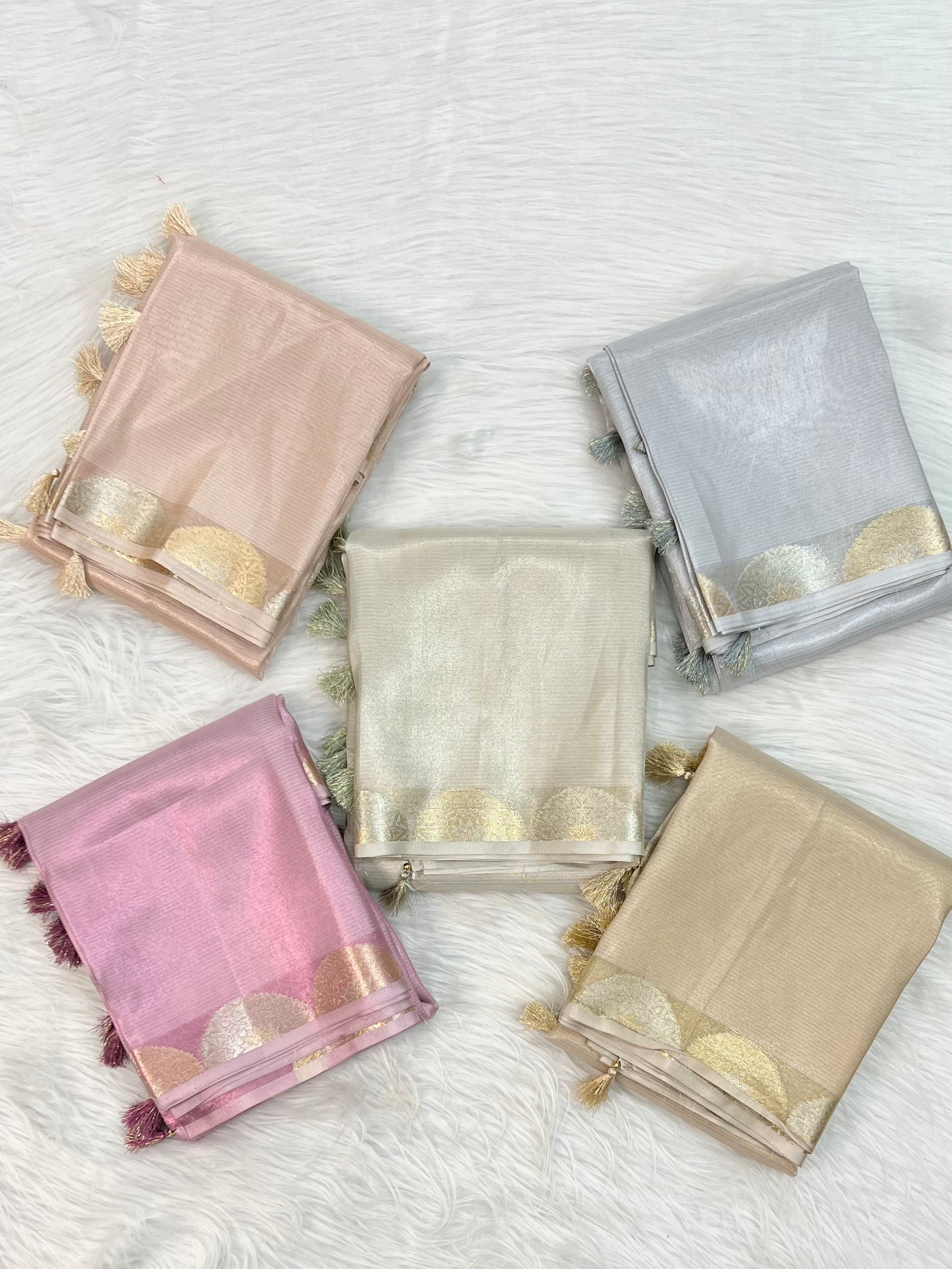 *Tissue fancy jacquard gold n silver zari border saree✨*