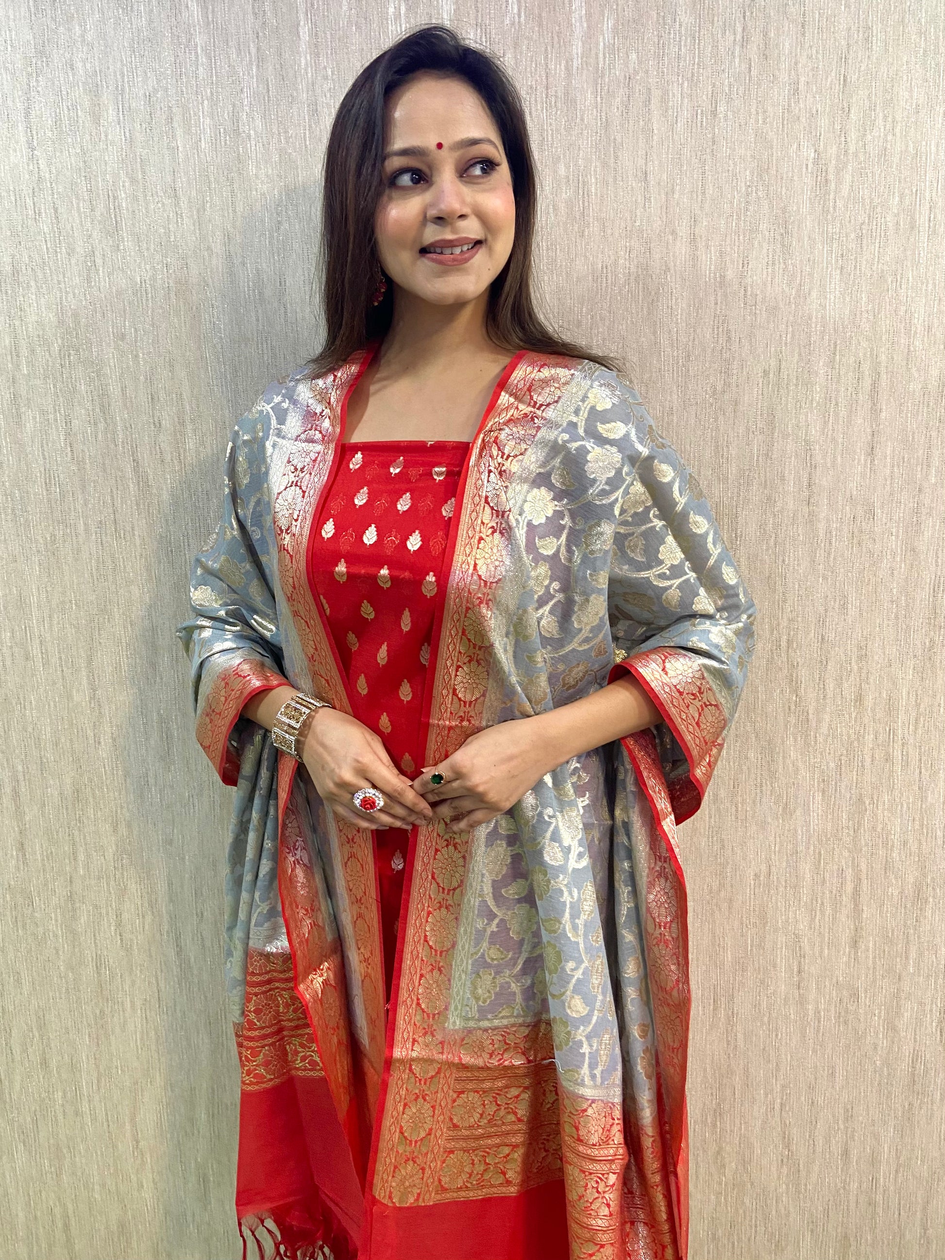 2.5 mtr lorex chanderi 2D contrast jaal dupatta