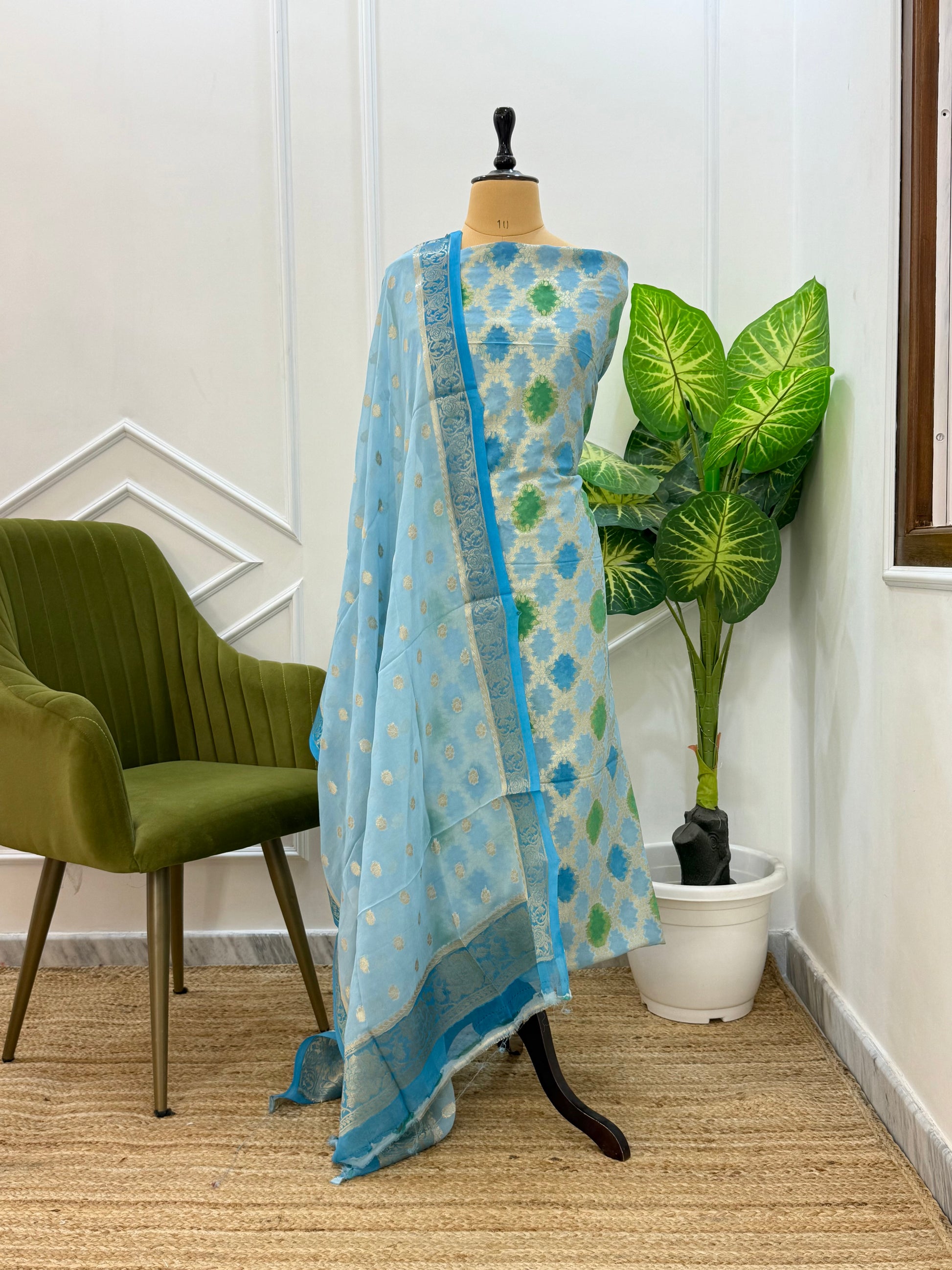 Expertly crafted from premium georgette silk, Multii offers a luxurious and elegant suit. The suit features a 2.5 mtr contrast shade booti zari weaving dupatta for added style. The 2.5 mtr georgette zari mina work suit and 2.5 mtr cotton silk bottom provide a comfortable and fashionable fit.