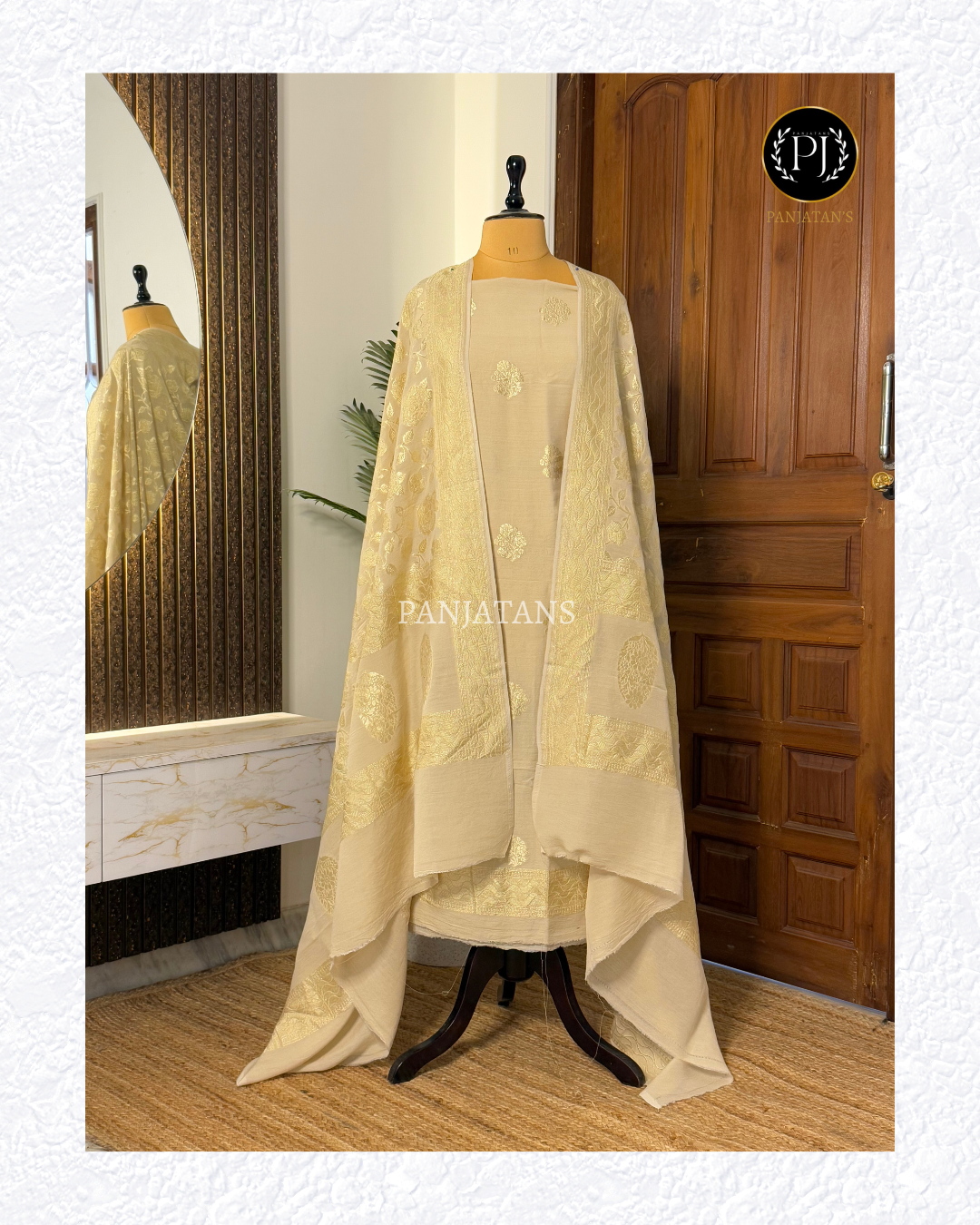 Discover the elegance of pure muga with our exclusive suit collection. Handloomed with intricate jaal and booti designs, this set includes a 2.5 mtr dupatta, top, and bottom. Experience the natural shine and durability of 100% pure muga.