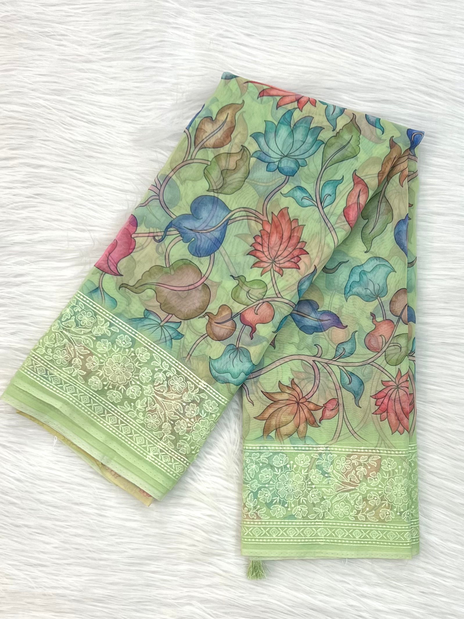 5.5 mtr soft organza digital print embroidery saree