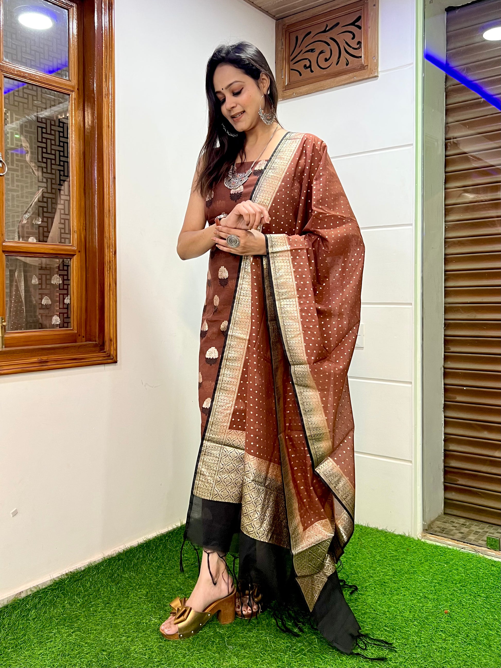 👗EXCLUSIVE BANARASI LOREX CHANDERI ZARI BOOTI SUIT COLLECTION🌹