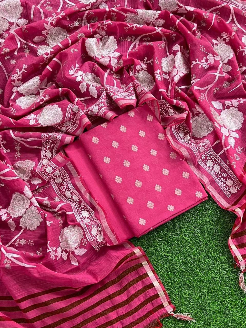 Expertly crafted with 2.5 mtr of heavy embroidery fancy jaal dupatta, a chanderi zari booti top, and a plain cotton silk bottom, the HEVYEMB set is the perfect combination of luxury and comfort. Indulge in the opulence of intricate embroidery and smooth, lightweight fabric, making it ideal for any occasion.